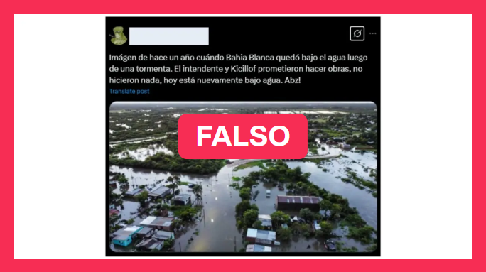 Sin embargo, es falso que la foto sea de aquel momento y que haya sido tomada en Bahía Blanca. La imagen corresponde a inundaciones ocurridas en el año 2024 en Mercedes, Corrientes.