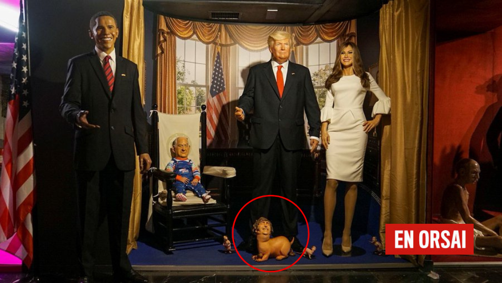 En el Museo de Cera de Madrid se exhibe una escena satírica que se volvió viral: Donald Trump rodeado de…