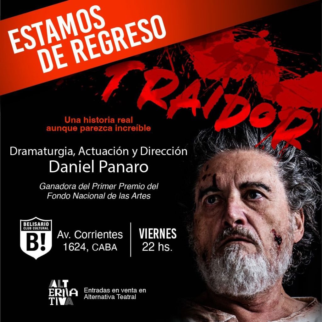 Traidor es teatro de palabra y de cuerpo, de historia y de vértigo. Un viaje solitario, visceral y profundamente político, donde la locura se vuelve espejo de una América aún en disputa.
