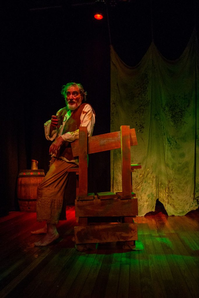 Panaro, autor, director e intérprete, sostiene con una entrega admirable un texto denso y poético, de resonancias clásicas pero de vibración contemporánea. Su Lope de Aguirre es un cuerpo en trance: un ser que se desgarra entre la furia y la lucidez, entre la ambición y la visión política. La palabra se vuelve espada, y la escena —despojada, apenas sostenida por la iluminación precisa de Sergio Nicolás Iriarte y la música envolvente de Babú Cerviño— se transforma en territorio mental.