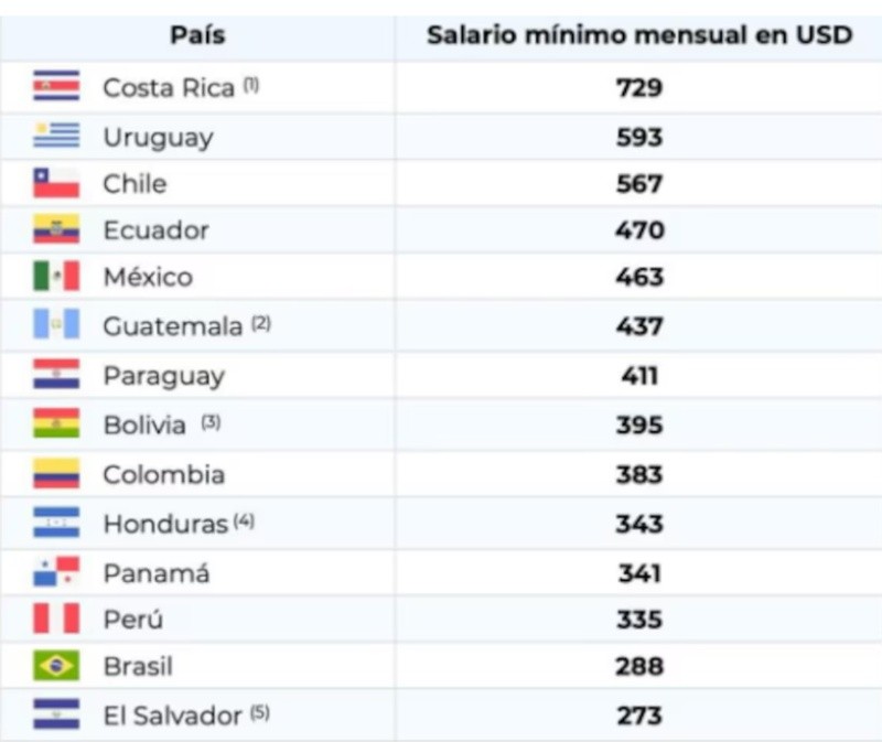 El Celag reveló que, actualizado a noviembre de 2025, el salario mínimo argentino es el más bajo de toda la región. Con apenas 225 dólares, se ubica en el fondo de la tabla, por debajo de Bolivia, Paraguay y muy lejos de Costa Rica, que lidera con 729 dólares.