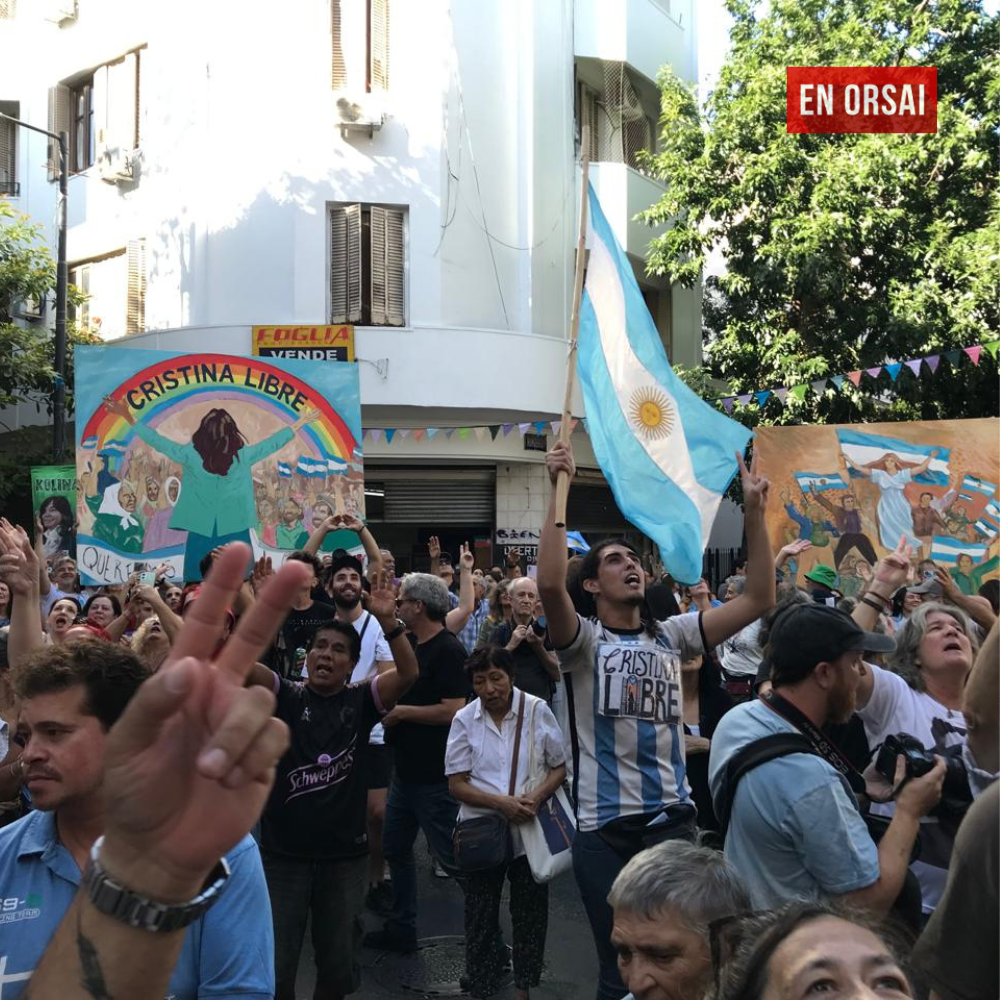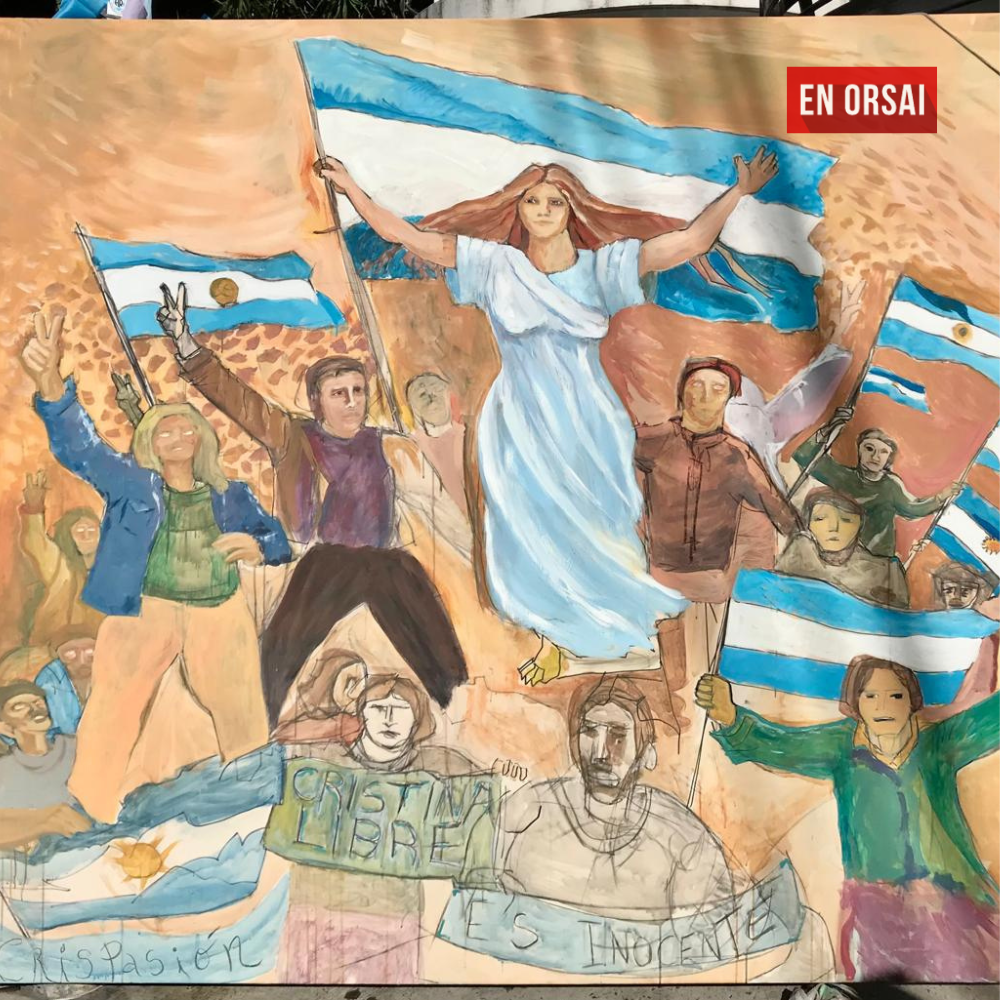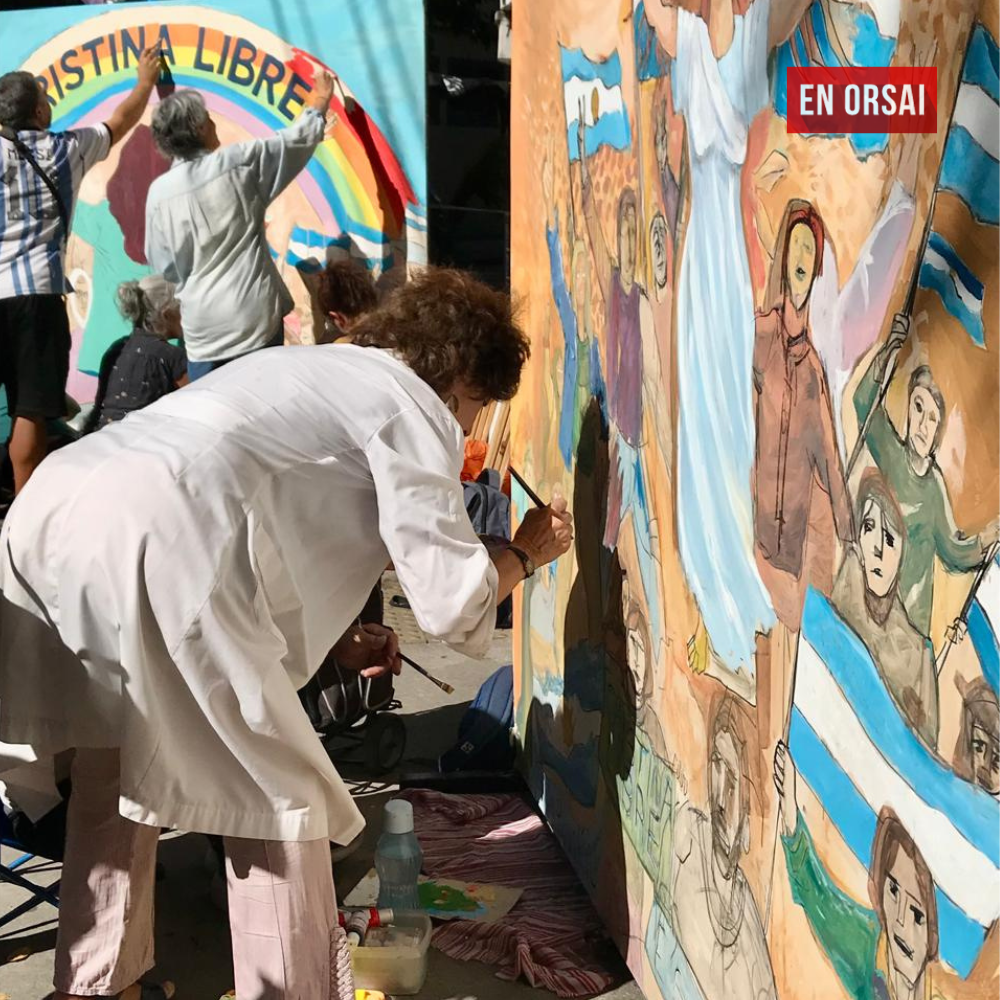 Desde temprano, el clima fue de celebración. Cerca de las 14:00 hs, vecinos y vecinas comenzaron a acercarse con banderas argentinas y remeras con la consigna de la jornada. Los artistas, cargados con pinceles y pinturas, se sumaron con entusiasmo para intervenir los dos murales emplazados frente al balcón de la exmandataria.