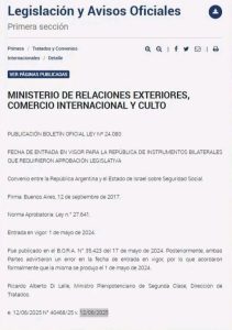 El acuerdo, que había sido firmado en febrero de 2024 pero se activa recién ahora con la publicación del reglamento administrativo correspondiente, establece que cualquier ciudadano israelí que resida legalmente en Argentina podrá acceder a jubilaciones, pensiones, asignaciones por maternidad, discapacidad y otras prestaciones contributivas del sistema previsional nacional.