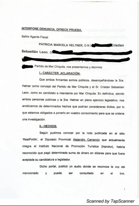 La denuncia fue radicada en sede judicial por Cristian León, excandidato a intendente de Mar Chiquita, y la concejal Patricia Heltner, ambos parte de La Libertad Avanza hasta que decidieron exponer lo que definen como una “maniobra sistemática” de cooptación de las listas por parte de quienes controlan el armado provincial: Sebastián Pareja, hombre de confianza de Milei, y Alejandro Carrancio, diputado provincial y operador clave en la Quinta Sección Electoral.
