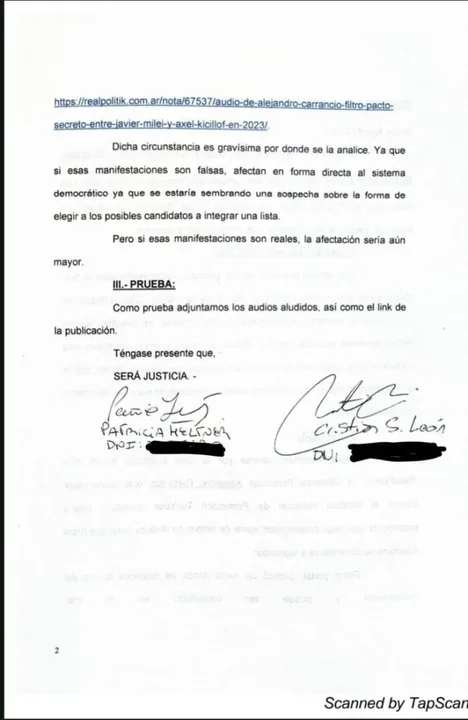Los denunciantes afirman tener en su poder documentos, testimonios y audios que probarían una práctica ilegal y, aún más grave, inmoral. En uno de los registros sonoros más comprometedores, el propio Carrancio reconoce la venta de candidaturas a cambio de dólares y menciona sin tapujos el uso de fondos públicos para financiar campañas. ¿Qué fue de aquella prédica austera que prometía cortar con la política de privilegios? ¿Dónde quedaron las promesas de transparencia y meritocracia? La evidencia parece indicar que, en los pasillos libertarios, la billetera pesa más que las ideas.