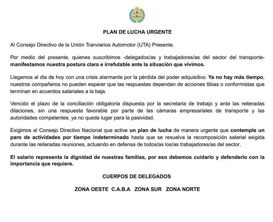 La respuesta del sindicato no se hizo esperar. Delegados de las seccionales del norte, sur, oeste y la Ciudad de Buenos Aires exigieron un paro por tiempo indeterminado y denunciaron una “crisis alarmante por la pérdida del poder adquisitivo”. A través de un comunicado contundente, afirmaron: “Nuestros compañeros no pueden seguir esperando respuestas tibias que solo conducen a acuerdos salariales a la baja”. La frase condensa no solo la indignación gremial, sino también el creciente hartazgo de una clase trabajadora cada vez más empobrecida y golpeada por la motosierra del ajuste libertario.